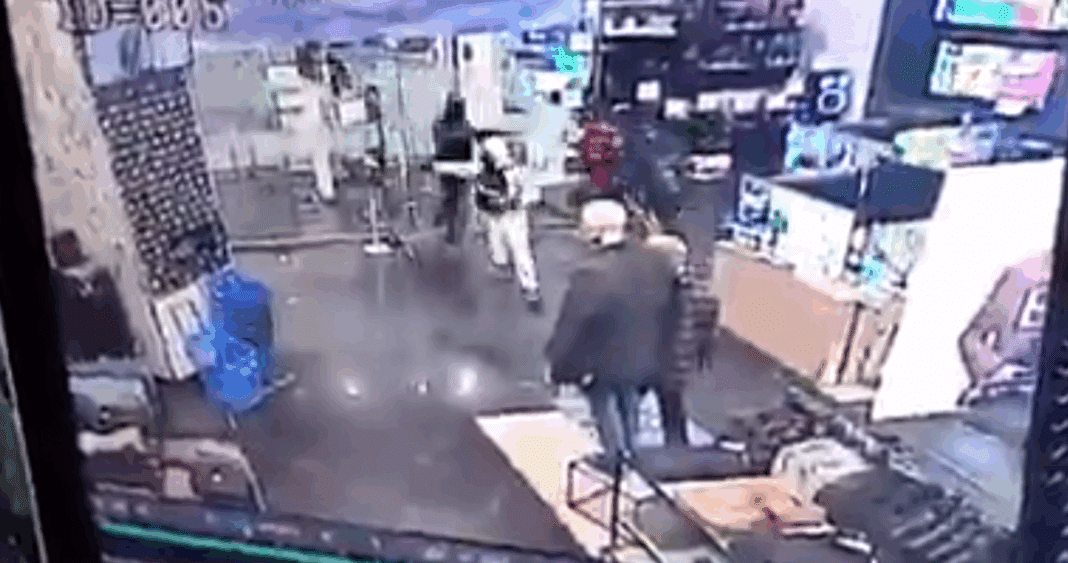 Las imágenes muestran cómo los asaltantes, actuando con precisión y determinación, ingresaron a la tienda cerca de las 19:40 horas. El primero de ellos apuntó directamente con un arma al cuello de uno de los guardias, mientras el resto del grupo reducía al otro vigilante. Luego, los delincuentes parecen haber utilizado un carrito de supermercado para transportar los elementos robados.